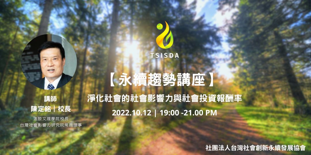 2022/10/12  | [Sustainable Trend Lecture] The social influence and social return on investment of purifying society |  Chen Dingming, Principal